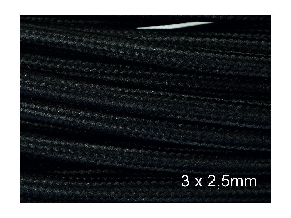 Textilní kabel 3 x 2,5mm - černé opletení