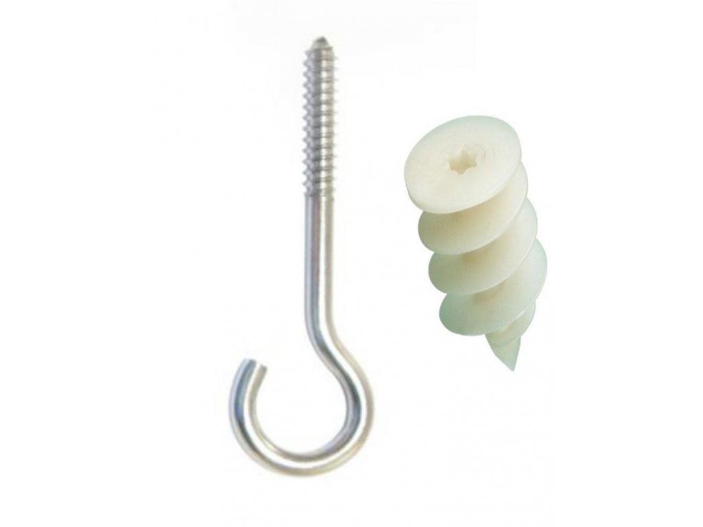 Stropní háček s hmoždinkou je určený pro montáž do sádrokartonu.