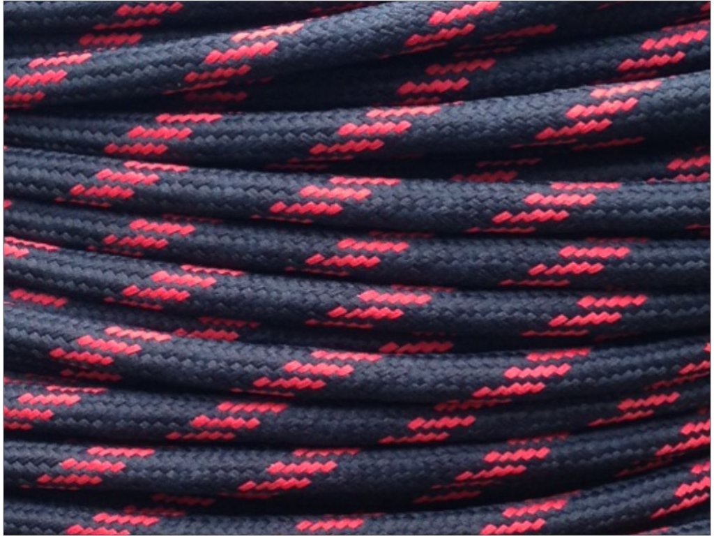 Textilní kabel 2 x 0,75mm ROUND 5 černo červený. (průměr kabelu 5,5mm)